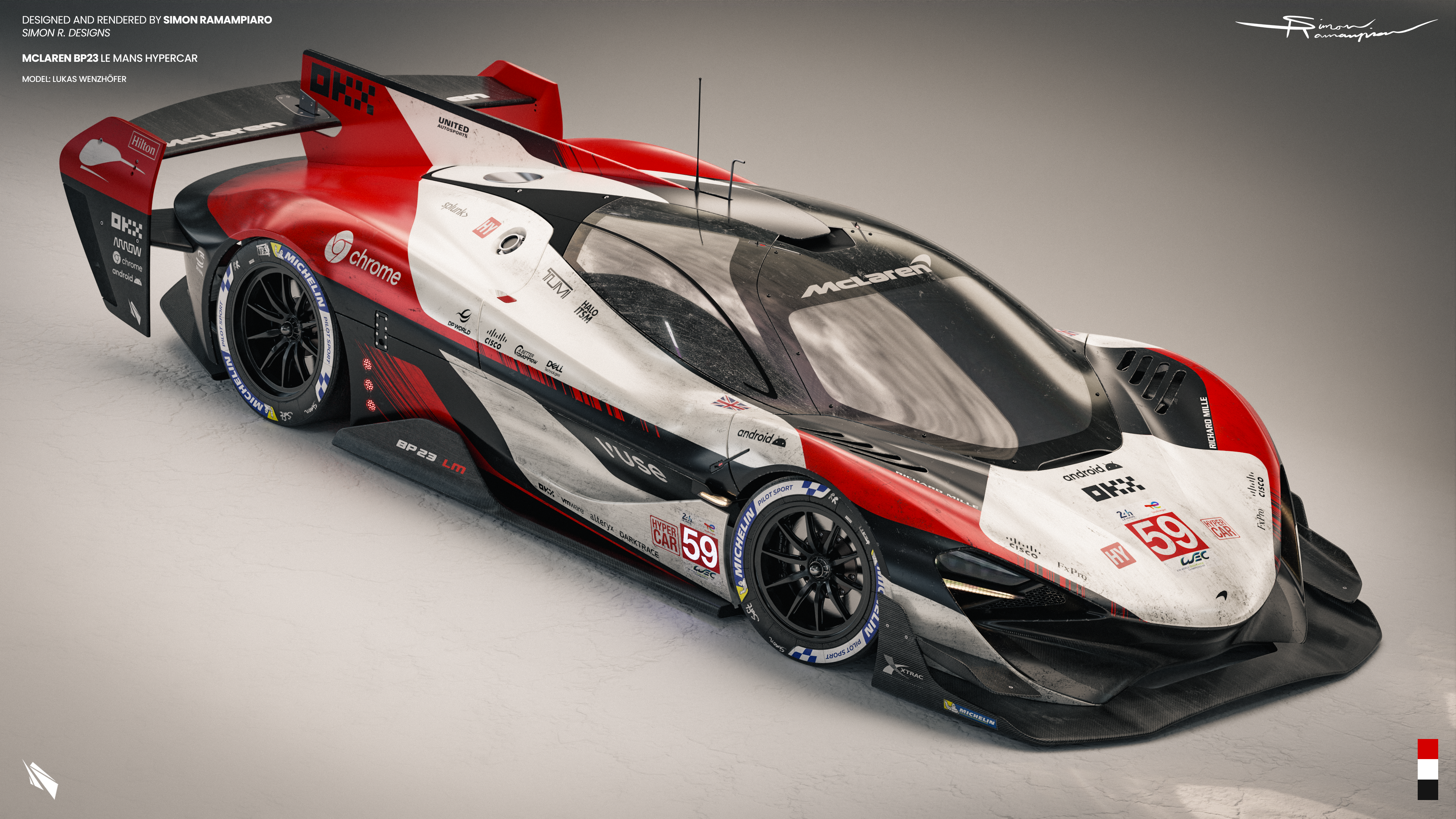 I reached out to professional alias modeler and automotive designer Lukas Wenzhöfer regarding his McLaren BP23 street car concept, my vision; to re-imagine it as a "future spec" Le Mans Hypercar (LMH). Although this process was fascinating in iteslf I won't go into too much detail in this post, as this process can be fully credited to Lukas' genius. I very much enjoyed the privilege of minor input on the final design.