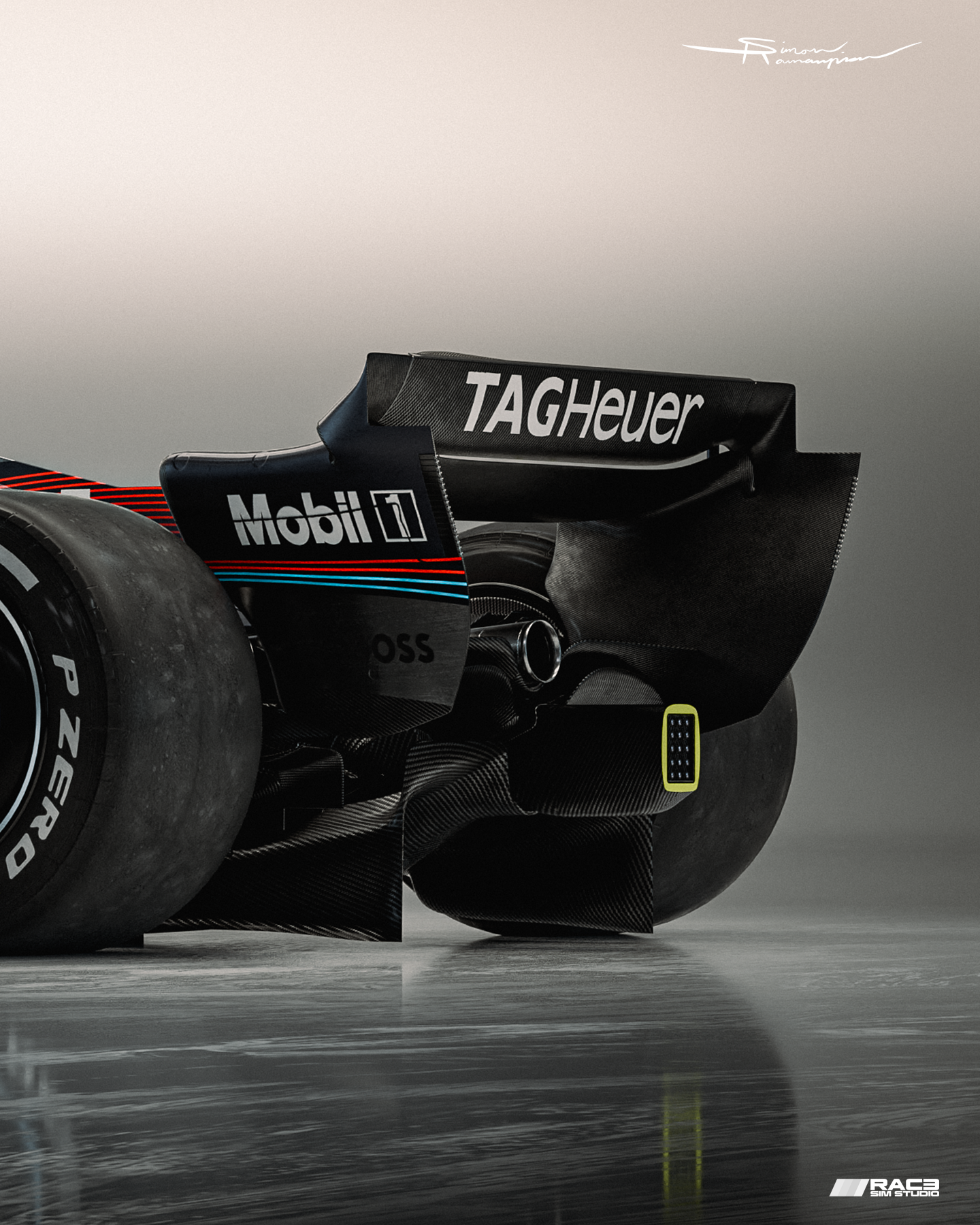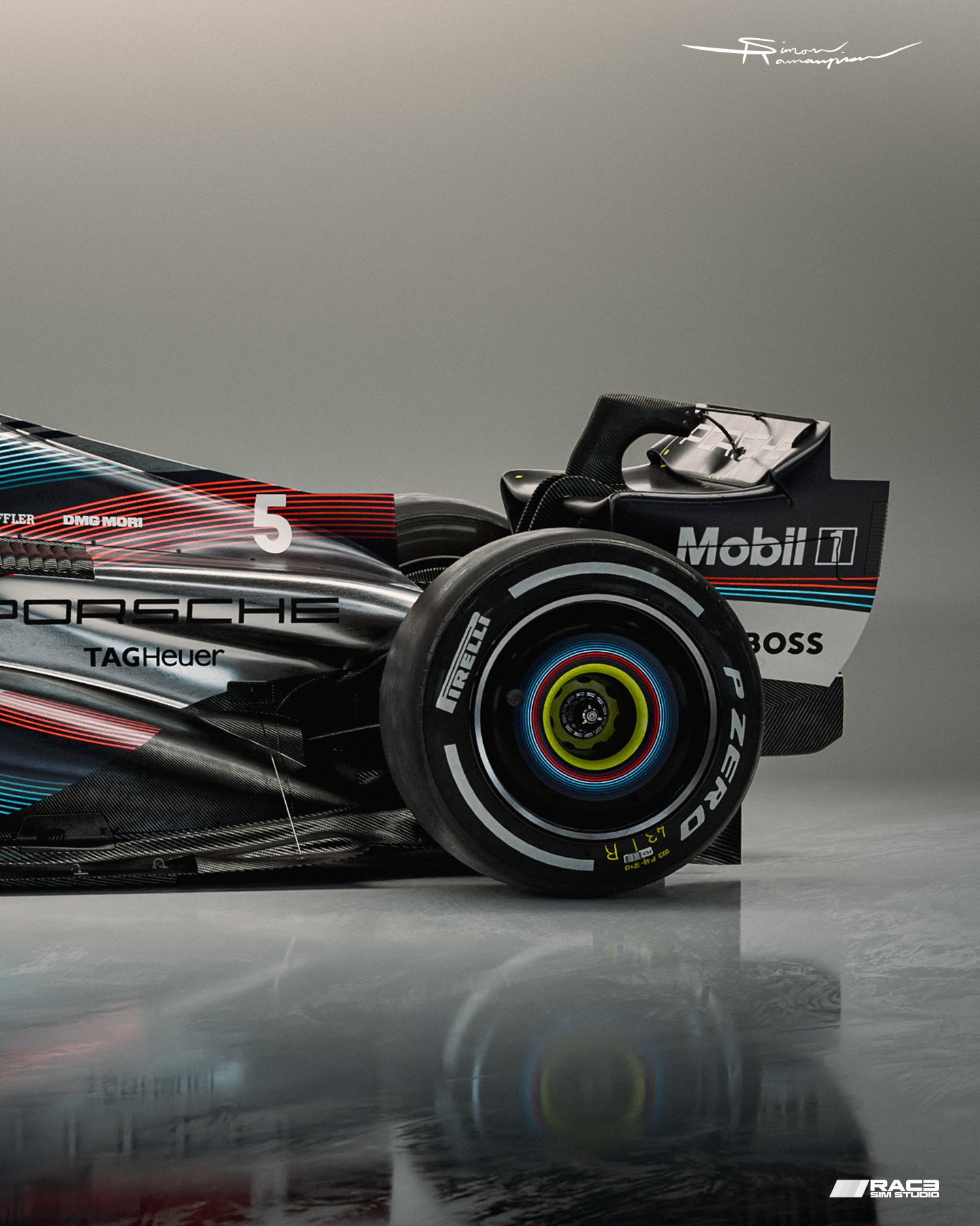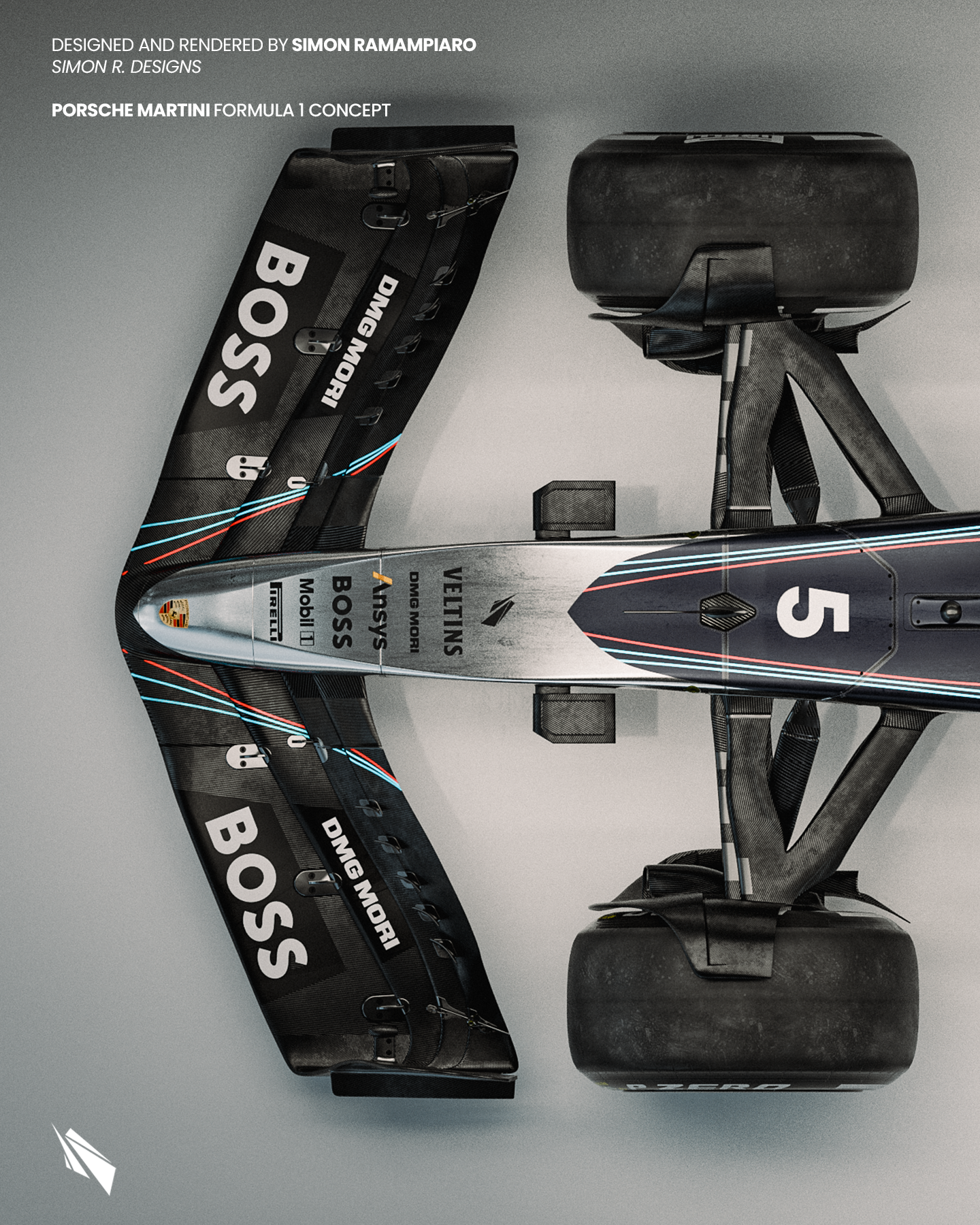 I present the Porsche Martini F1 concept – a tapestry woven with threads of legacy and a vision for a theoretical future in Formula 1. Drawing inspiration from the iconic Martini Racing livery, this proposal aims to seamlessly integrate the timeless elegance associated with Porsche with a modern contemporary design, fitting of Formula 1 success.
